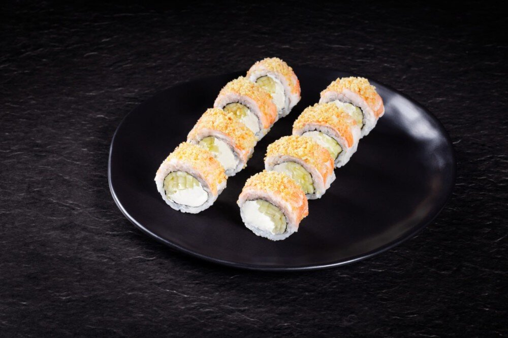 Ryż, nori, ser, jabłko, krewetka, ser z syropem kokosowym, orzechy makadamia.