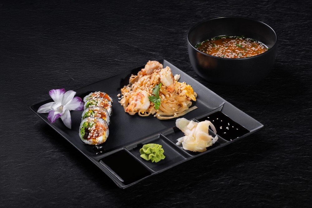 Pad Thai z krewetkami, Maki z pieczonym łososiem, Miso